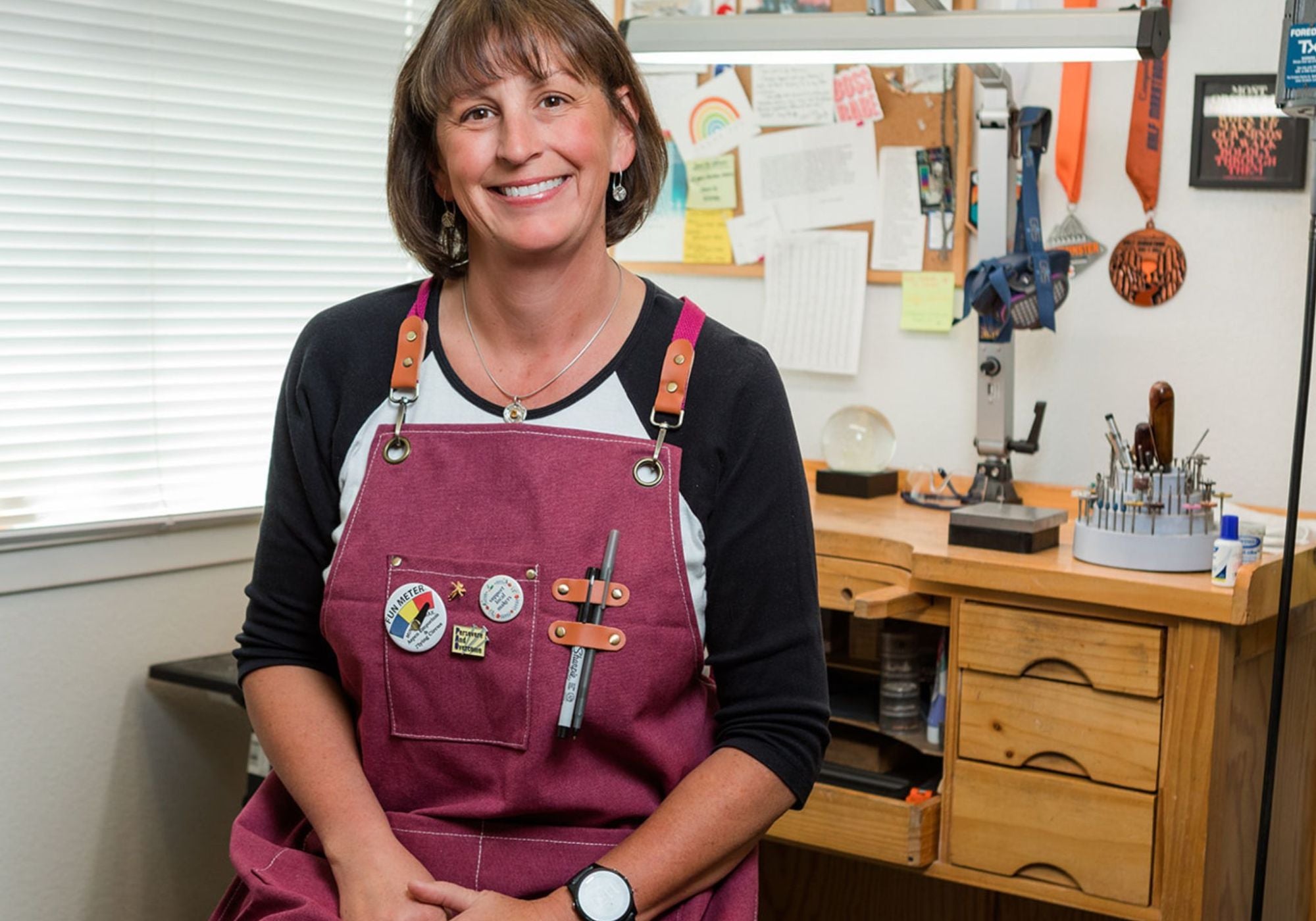 In 2014, I found myself at a crossroads with my career when I was diagnosed with bilateral hip dysplasia and labral tears. After two hip preservation (PAO) surgeries, I decided to retire from my fitness career and go full-time with my jewelry business. Since then, I have done hundreds of art shows, sold my work to over 60 retail partners across the country, studied at GIA (Gemological Institute of America) to become an Accredited Jewelry Professional, and opened my jewelry school and store, Silver Peak Jewelry Arts.