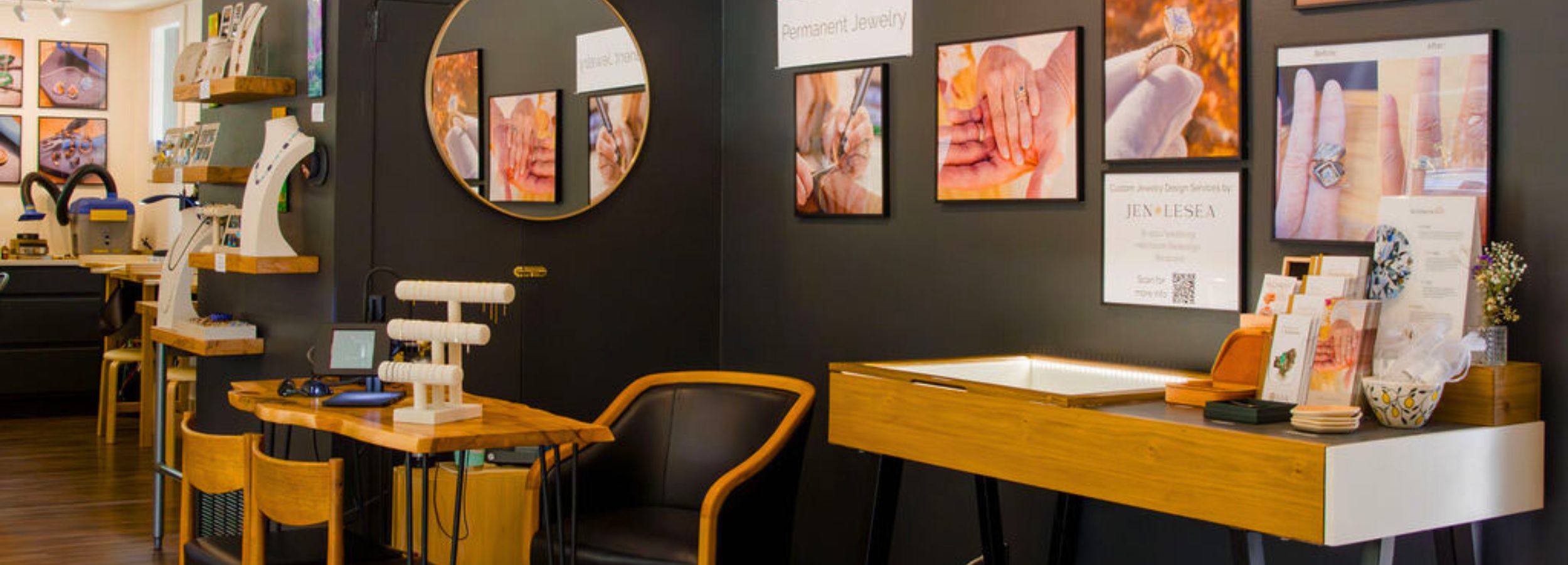 Want to meet in person to discuss a custom jewelry project or view my in-stock 14K gold jewelry? Stop by my store and jewelry school, Silver Peak Jewelry Arts, located on the SE corner of S. Public Rd and East Cleveland Street in Old Town Lafayette.